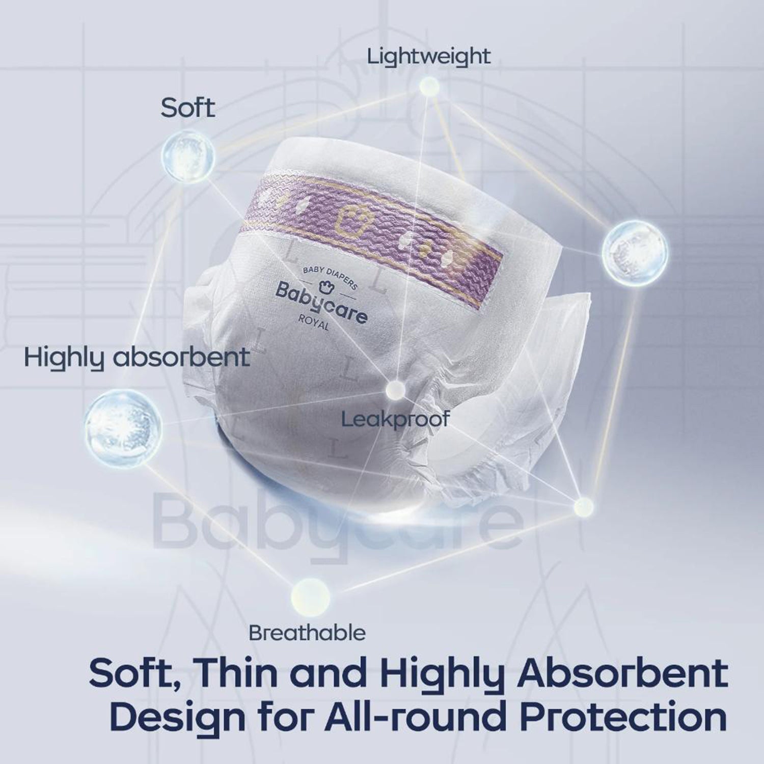 Babycare Diapers are made in a cutting-edge, dust-free facility to ensure top quality. From material selection to packaging, every step meets the highest standards. Designed for comfort and absorbency, they feature extra padding to prevent leaks and a flexible waistband for a snug, comfy fit that moves with your baby.