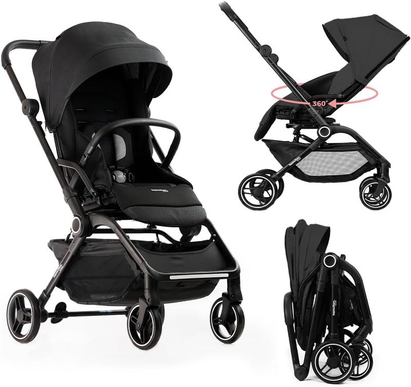 Hamilton by Yoop T1 Buggy – 360° Rotating Seat – MagicFold™ Technology – Foldable – Reflective Wheels with Suspension – Includes Protective Bag and Cup Holder – Adjustable and Manoeuvrable Pushchair – Lightweight Stroller – Folding Buggy – Black
