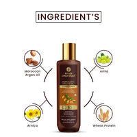 Moroccan argan oil Amla Extract, Arnica Extract, Wheat Protein Extract, Jatamansi Extract, Lemonpeel Extract, Almond Oil, Jojoba Oil
