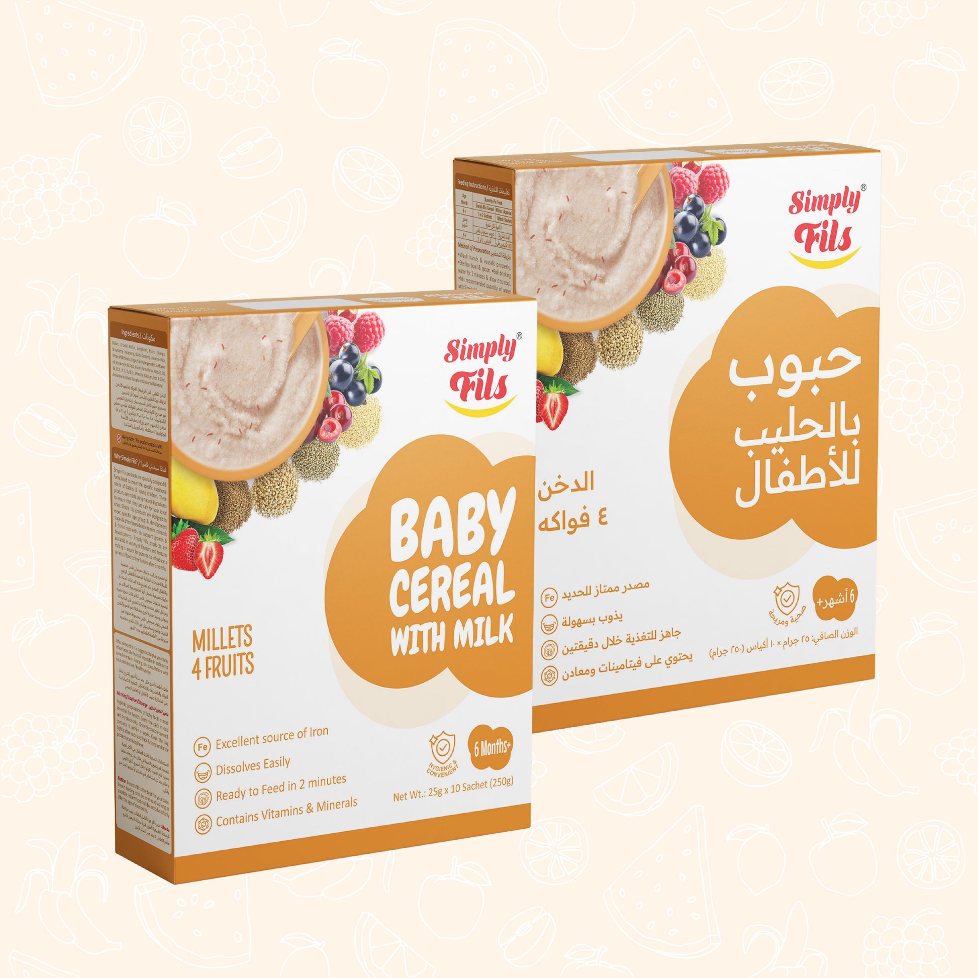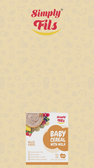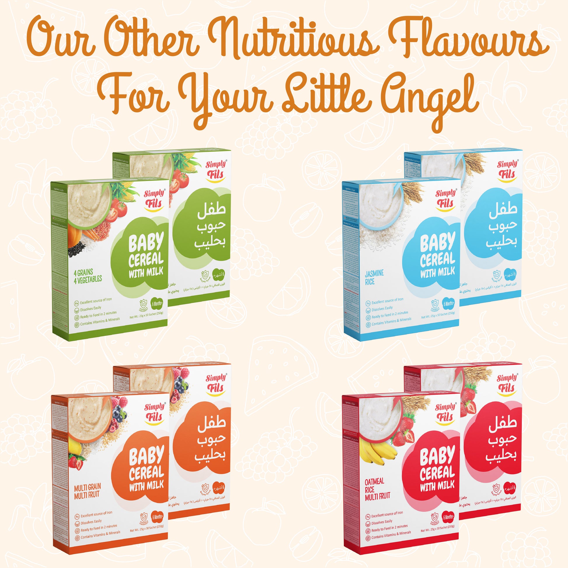 Simply Fils Multifruit & Millets Baby Cereal with Milk 10 Single Serve Infant Cereal Sachets, 6-36 Months, Fortified with Vitamins & Minerals-250gm. 100 % Natural Ingredients| No Preservatives | No Palm Oil | Fortified with vitamins & Minerals | Easy To Prepare | Rich in Fibres. Nourish your little angel with the wholesome goodness of Simply Fils Multi Grain Multi Fruit Baby Cereal with milk – specially crafted for babies aged 6 to 36 months. Each box contains 10 single-serve sachets for convenient, mess-free Travel feeding. Made with premium Jasmine rice, fruits, whole milk powder, and sunflower oil, it’s fortified with essential vitamins (A, C, D3, B-complex, E) and minerals (Calcium, Iron, Zinc) to support healthy growth and development.