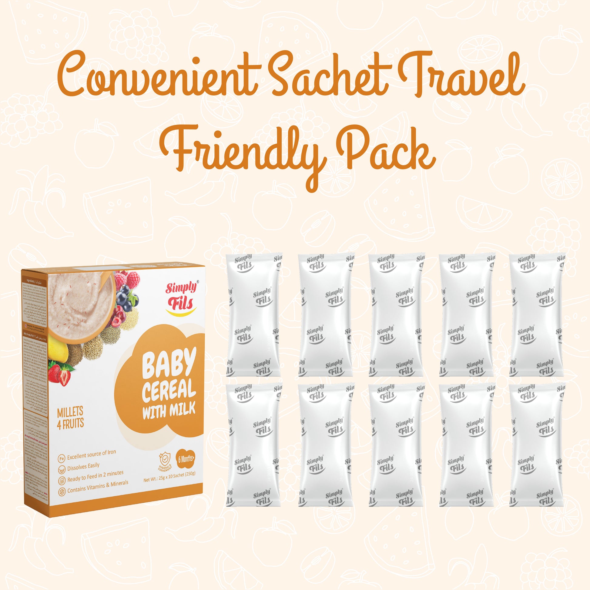 Simply Fils Multifruit & Millets Baby Cereal with Milk 10 Single Serve Infant Cereal Sachets, 6-36 Months, Fortified with Vitamins & Minerals-250gm